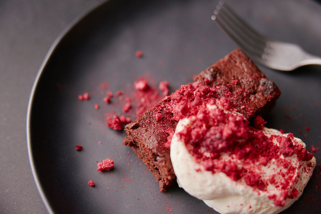 Fry-Pan Chocolate Brownie with Raspberry